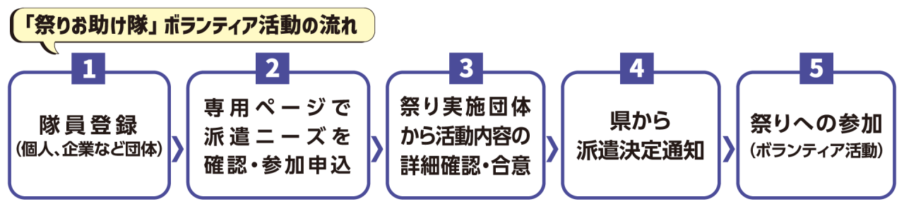 ※企業など団体の方には、派遣要望の人数が多い祭りなどを中心に県事務局で調整のうえ、担当の方に直接連絡します。